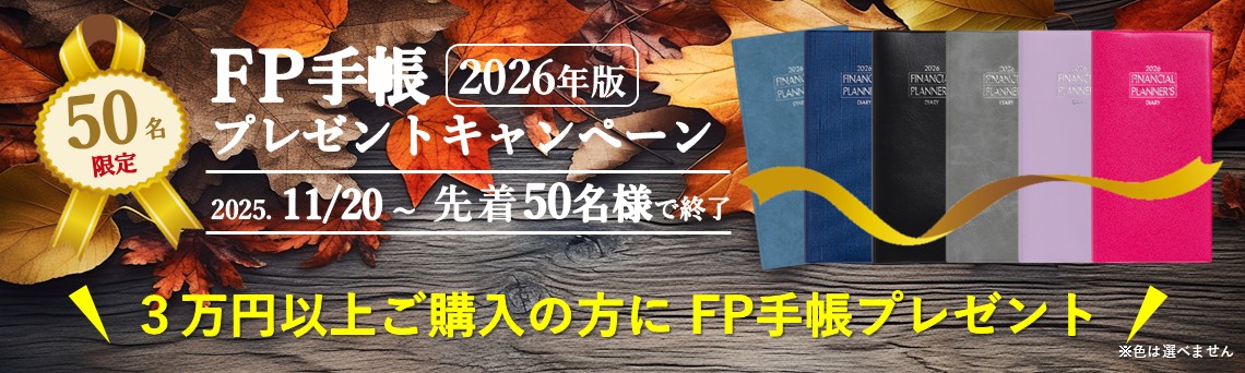 年末恒例!【FP手帳キャンペーン】を開催中!3万円以上ご購入の方にFP手帳プレゼント!詳しくはこちら